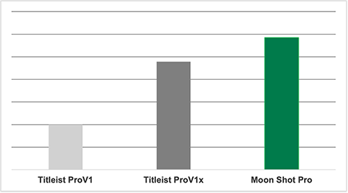 In side-by-side robot testing simulating average golfer driver speeds, our Moon Shot Pro carried farther than both the Pro V1 and Pro V1x.